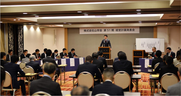 年に一度、経営計画発表会を従業員、銀行、取引先、関係各社向けに実施。また、産官学における講演などで自社の取り組みを公表しています。