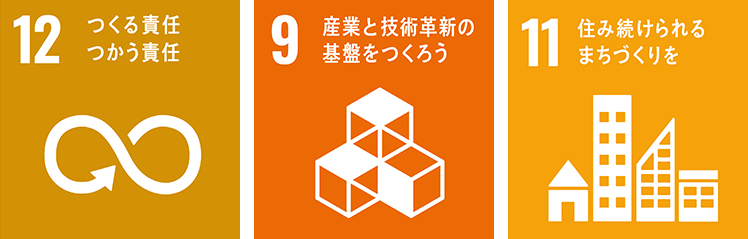 SDGsの目標の12番目に「つくる責任 つかう責任」というものがあります。わたしたちは古木という「モノ」の循環により、持続可能な消費と生産のパターンを確保しています。また、古木という新たな産業を生むことで、9番目の目標である「産業と技術革新の基盤をつくろう」も実現し、さらに空き家問題の解消を通じて、11番目の目標である「住み続けられるまちづくりを」にも貢献しています。