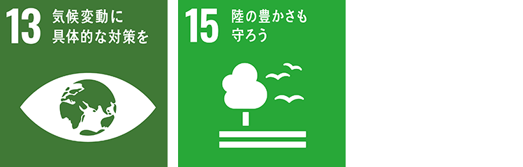 こうした森林保護の取り組みでも、SDGsの13番目の目標である「気候変動に具体的な対策を」と、15番目の目標である「陸の豊かさを守ろう」を実現しています。
