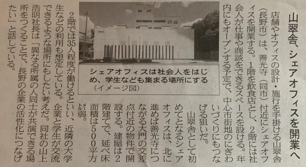 2021年6月30日 日本経済新聞 「 山翠舎、シェアオフィスを開業へ」
