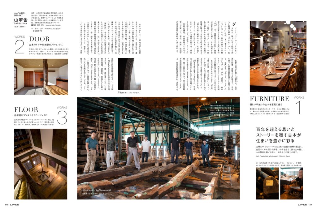 2020年10月1日 LiVES LIVING & LIFESTYLE MAGAZINE 百年を超える思いとストーリーを宿す古木が住まいを豊かに彩る」