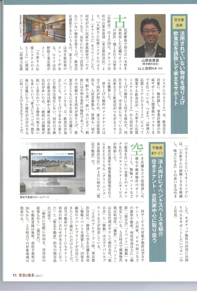 2021年7月号 『家主と地主』 「活用されていない物件を借り上げ、飲食店を誘致して家主をサポート」