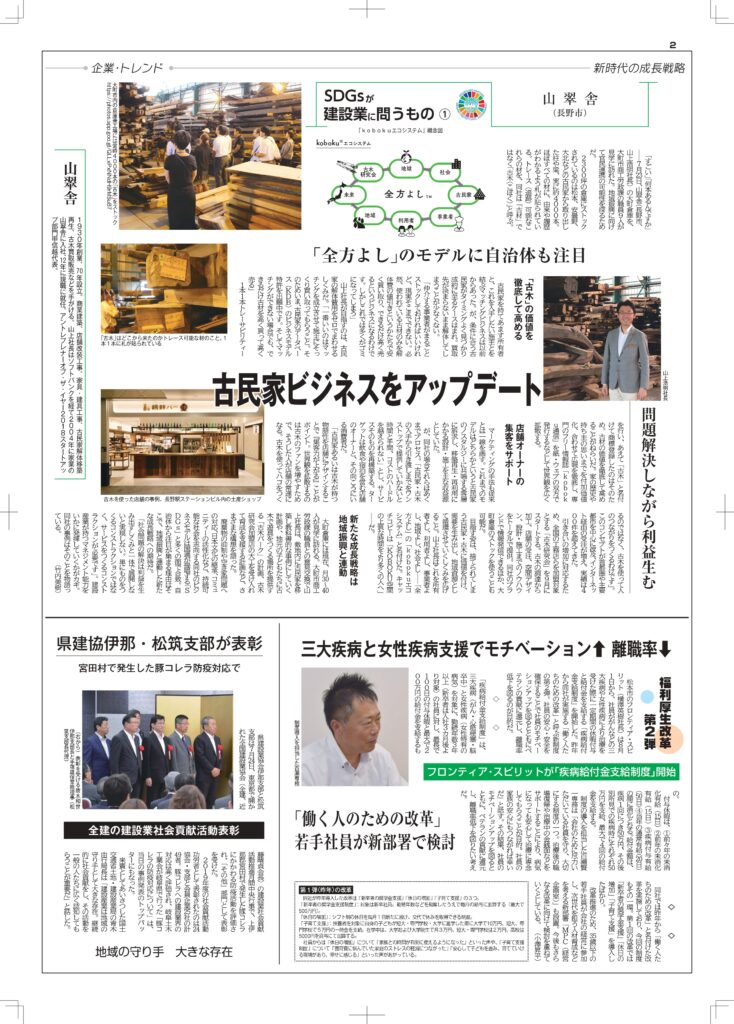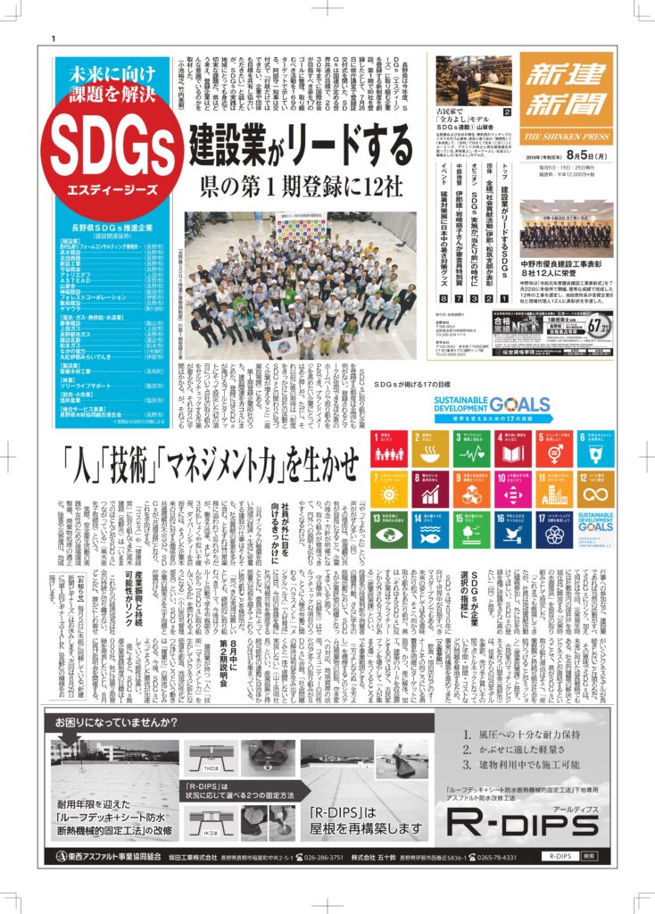 2019年8月5日 新建新聞 「SDGs  古民家ビジネスをアップデート」