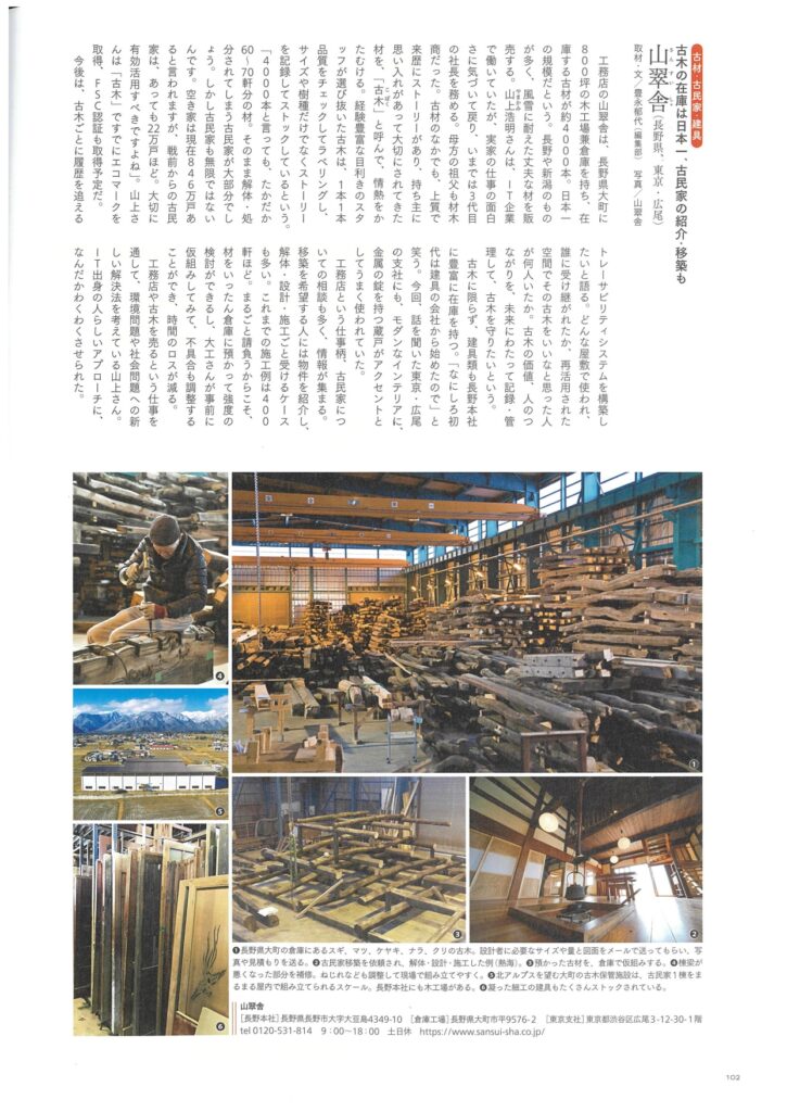 2019年10月号 CONFORT 「古木の在庫は日本一、古民家の紹介・移築も 」